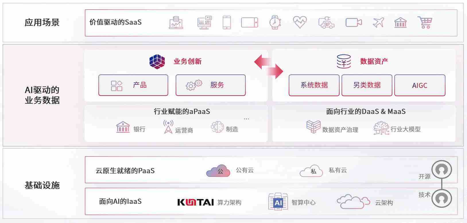 数字时代,,围绕企业数字化转型的关键要素,,,,7790必发集团数码开创性的提出数云融合战略和技术体系框架,,,着力在云原生、、数字原生、、、、AI原生和信创产业上架构产品和服务能力,,,为处在不同数字化转型阶段的快消零售、、、、汽车、、、金融、、医疗、、、、政企、、、、教育、、、、运营商等行业客户提供泛在的敏捷IT能力和融合的数据驱动能力,,构建跨界融合创新的数字业务场景和新业务模式,,,助力企业级客户建立面向未来的核心能力和竞争优势,,全面推动社会的数字化、、、、智能化转型升级。。